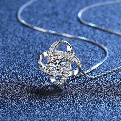 Valentine's Day Moissanite Clover Heart Pendant Necklace