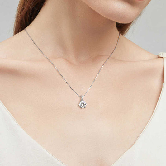 Moissanite Pendant Necklace with 1.0 Carat Round Brilliant-Cut Stone