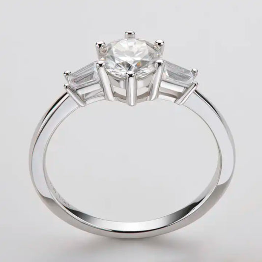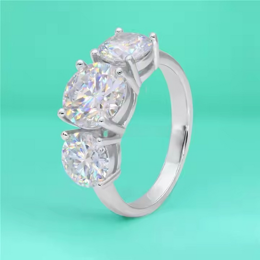 6.5mm 1 Carat Moissanite Three-Stone Engagement Ring