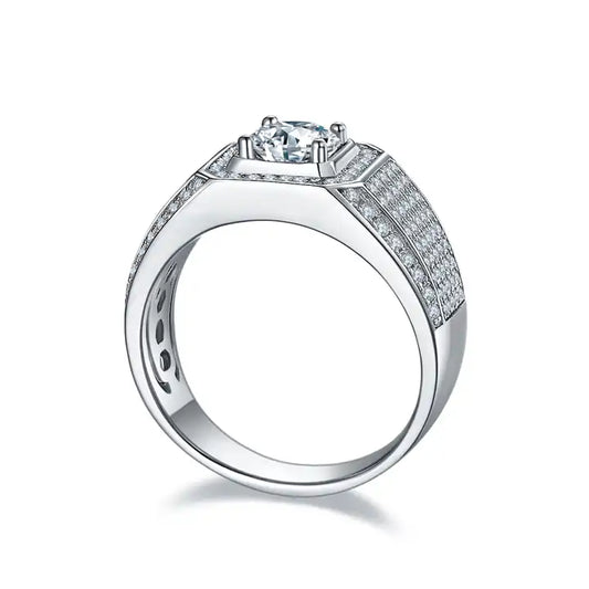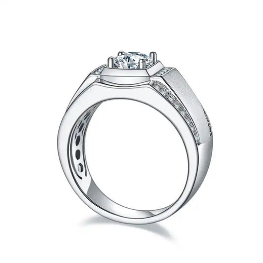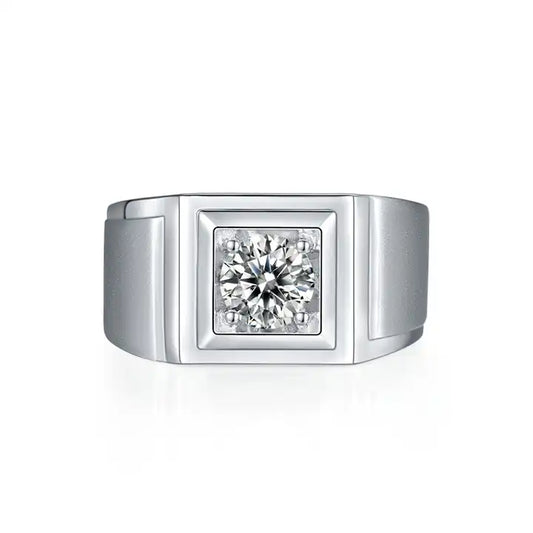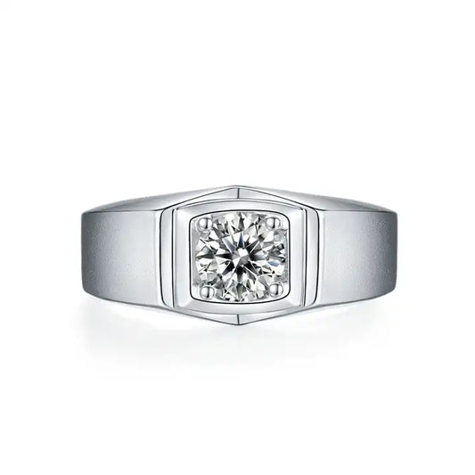 GRA VVS 1.0ct Moissanite Men's Ring - Round Brilliant Solitaire Design