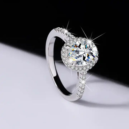 2.0 Carat Oval Moissanite Halo Ring - Luxury