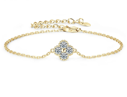 Moissanite Four-Leaf Clover Sterling Silver Bracelet