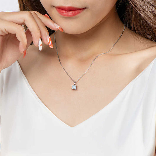 Moissanite Square Pendant Necklace with 1.0 Carat Princess Cut (6.5mm)