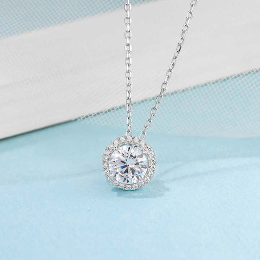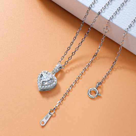 Moissanite Heart Pendant Necklace with 1.0 Carat D Color Halo Design