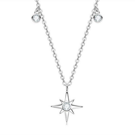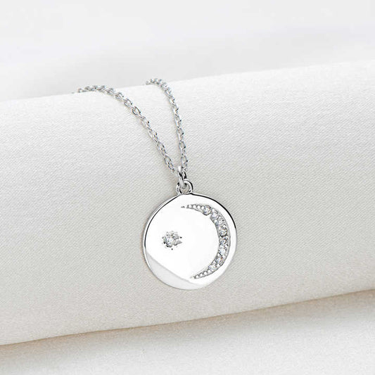 Moissanite Star and Moon Pendant Necklace with 1.3mm and 1.5mm Round Brilliant Cuts