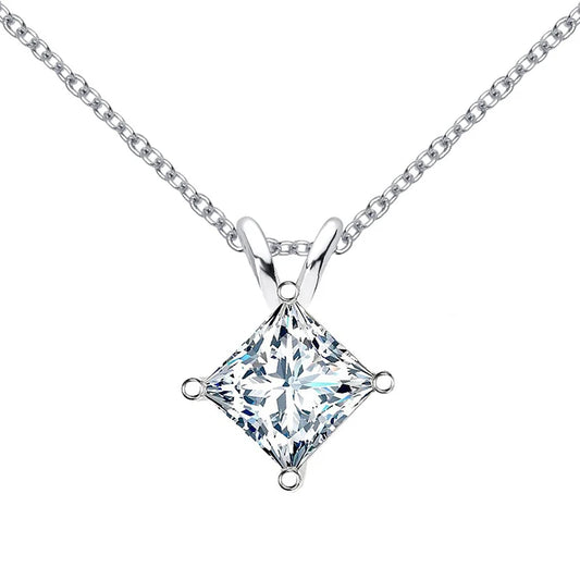 Moissanite Princess Cut Pendant Necklace with 1.0 Carat D Color Stone