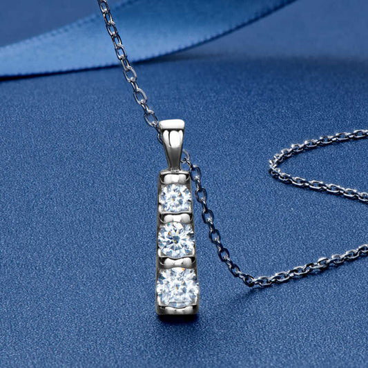 Moissanite D Color Certified Three-Stone Pendant Necklace