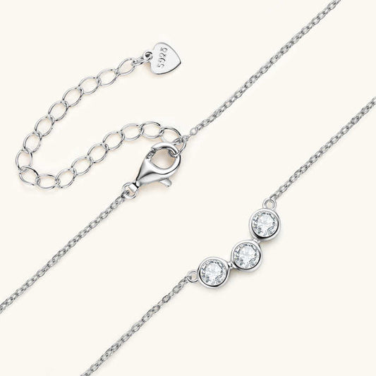 Moissanite Three-Stone Pendant Necklace with 3mm, 4mm, and 5mm Round Brilliant Cuts
