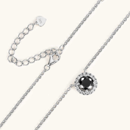 Moissanite Halo Pendant Necklace with 1.0 Carat Round Black