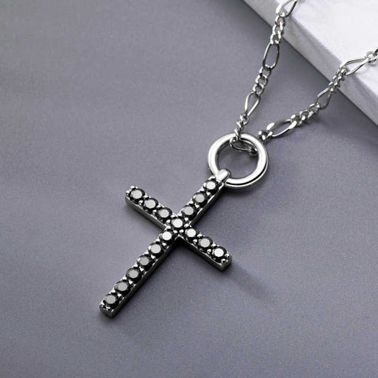 Black Moissanite Cross Pendant Necklace with 2.5mm Round Brilliant