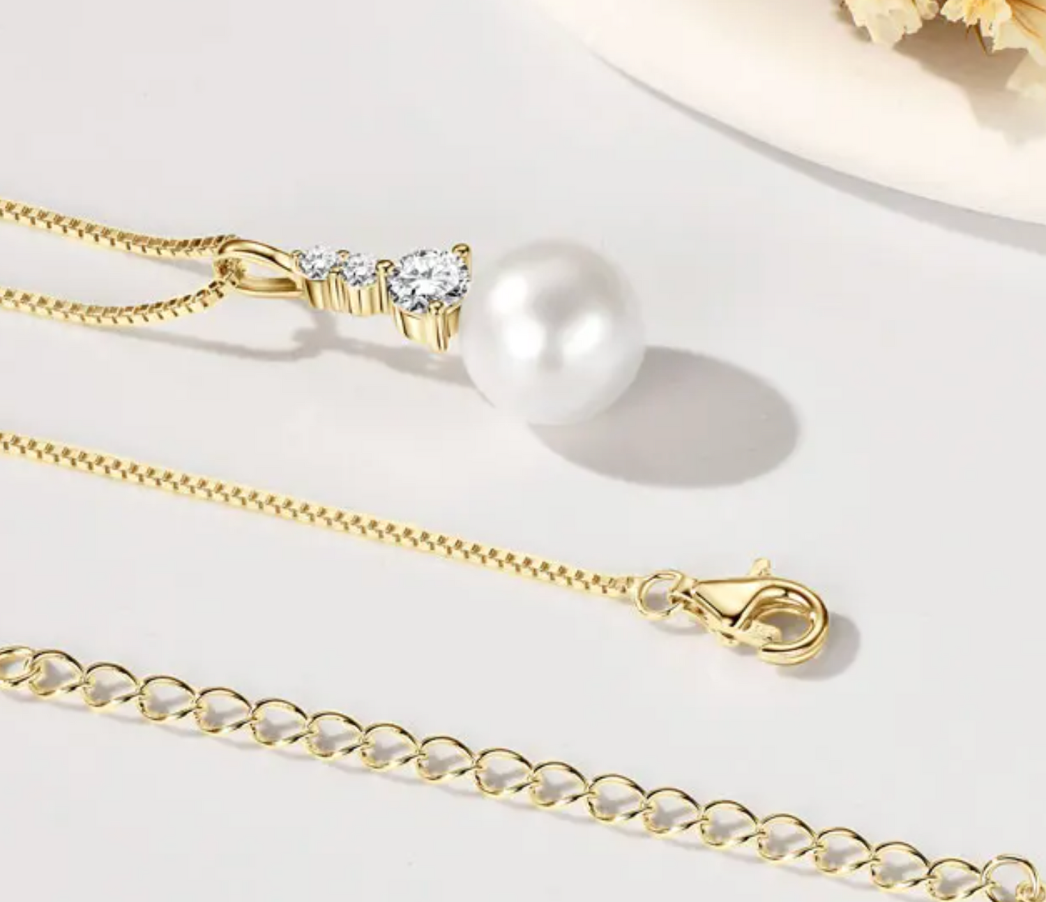 Beautiful Natural Freshwater Pearl & Moissanite Necklace